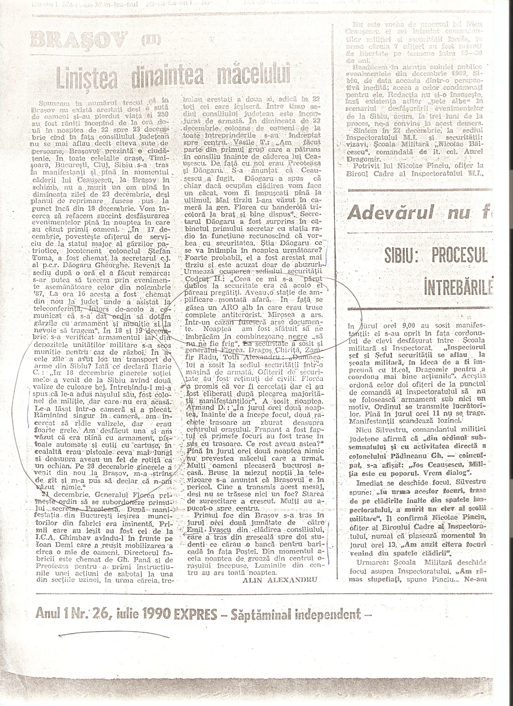 Gelu Voican Voiculescu memoriaza din Expres (Brindusa Armanca). 17-23 septembrie 1991 (nr. 86)