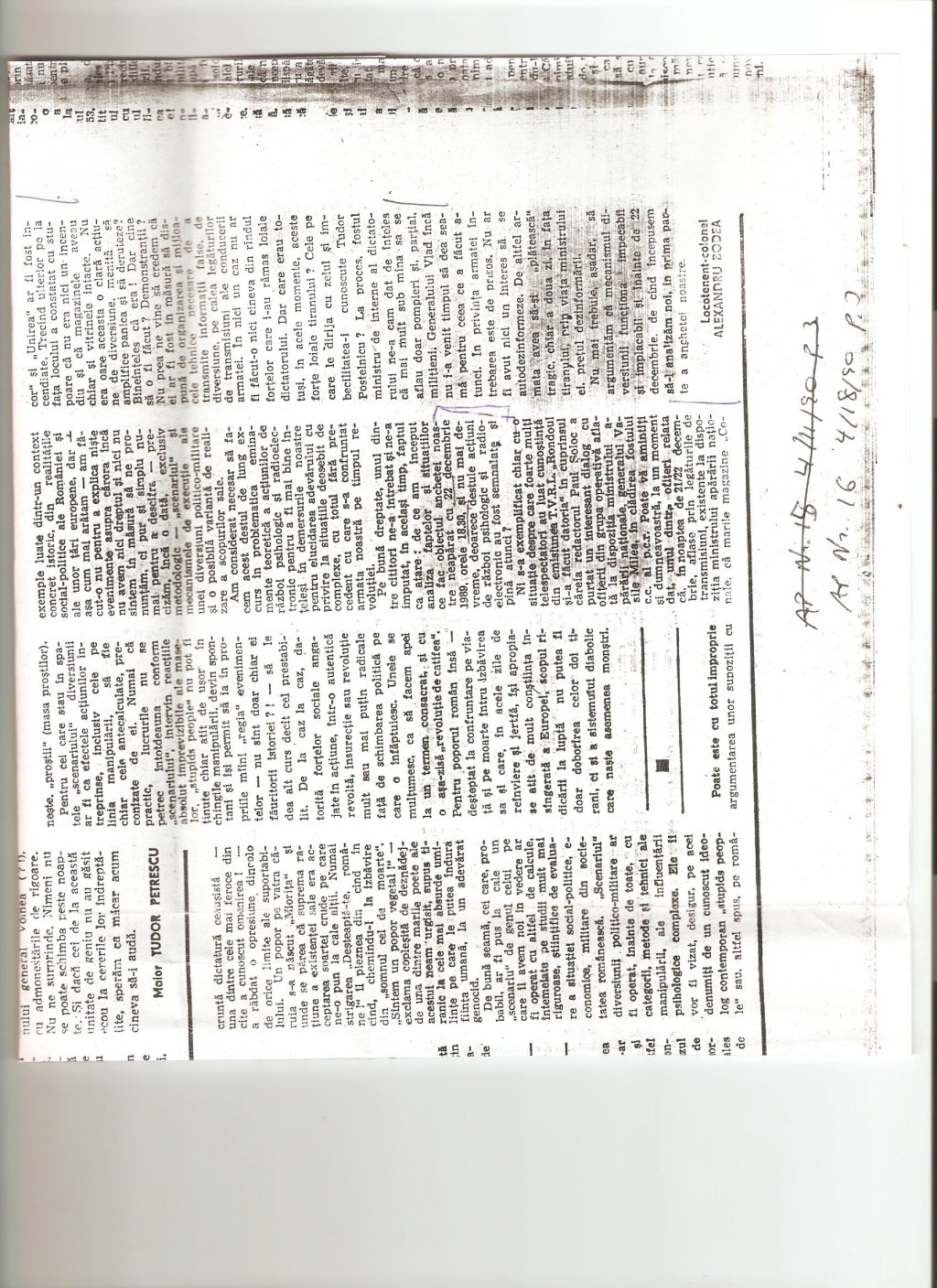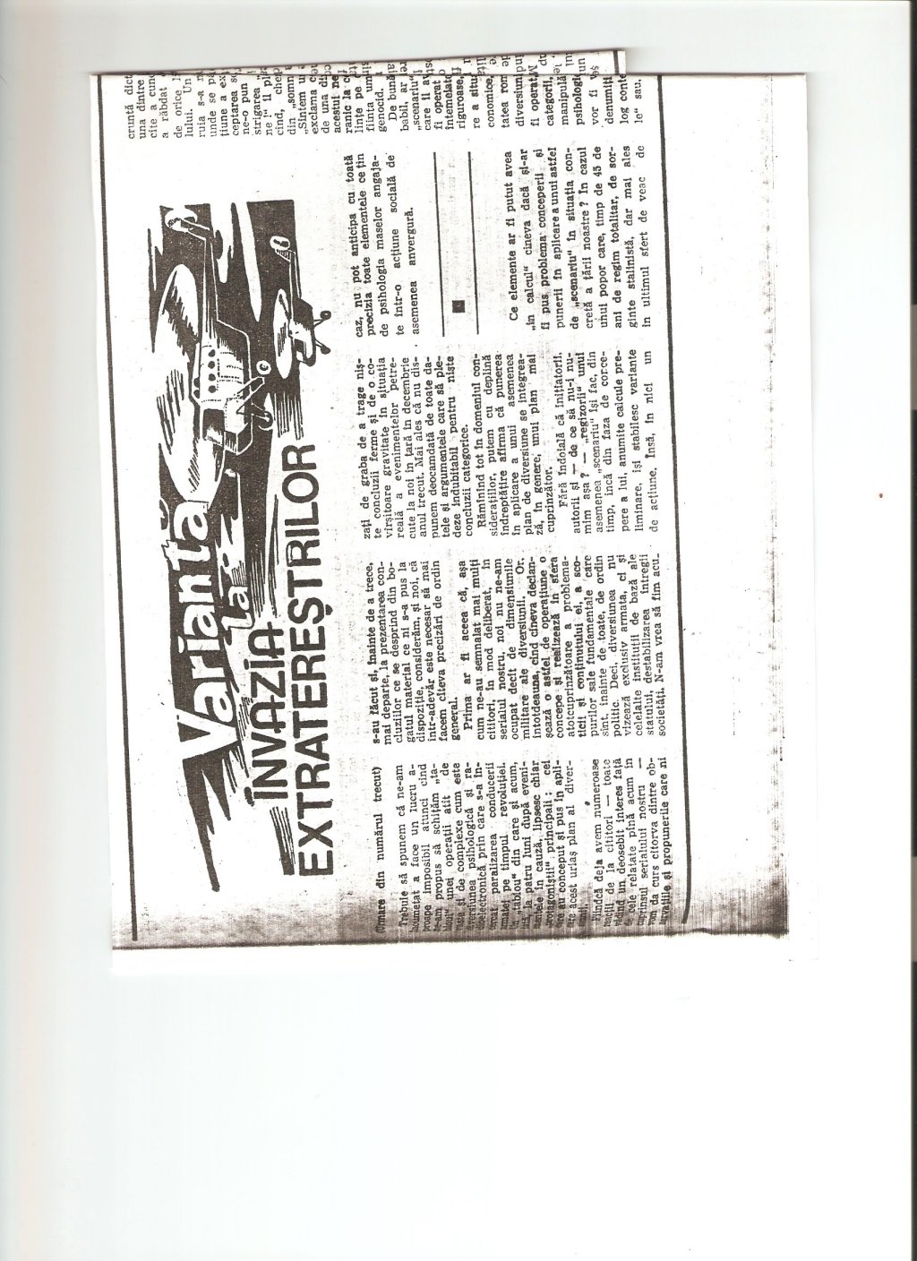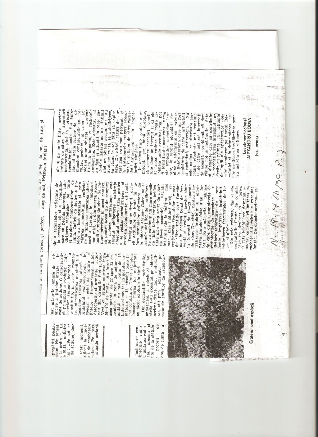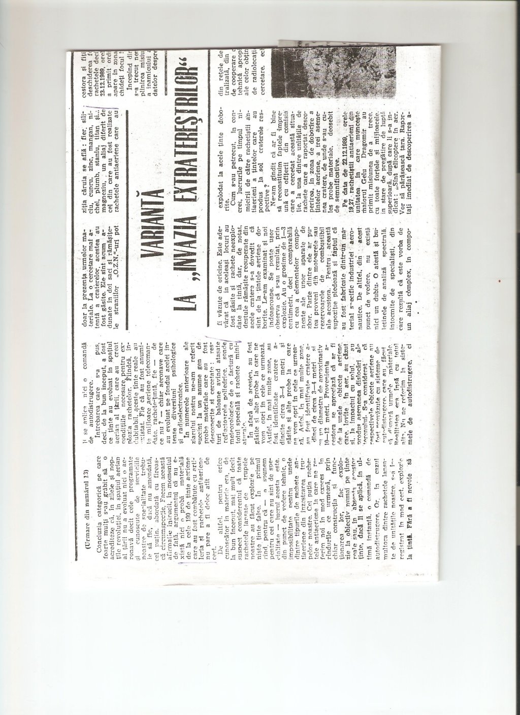 Locotenent-colonel Alexandru Bodea, “Varianta la Invazia Extraterestrilor,” Armata Poporului, nr. 12 (21 martie 1990), p. 4.