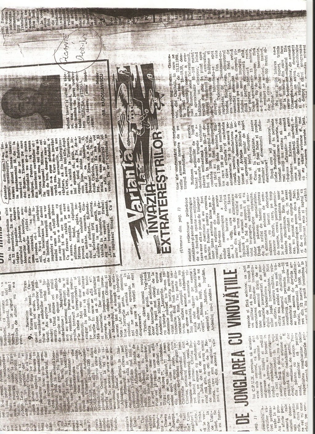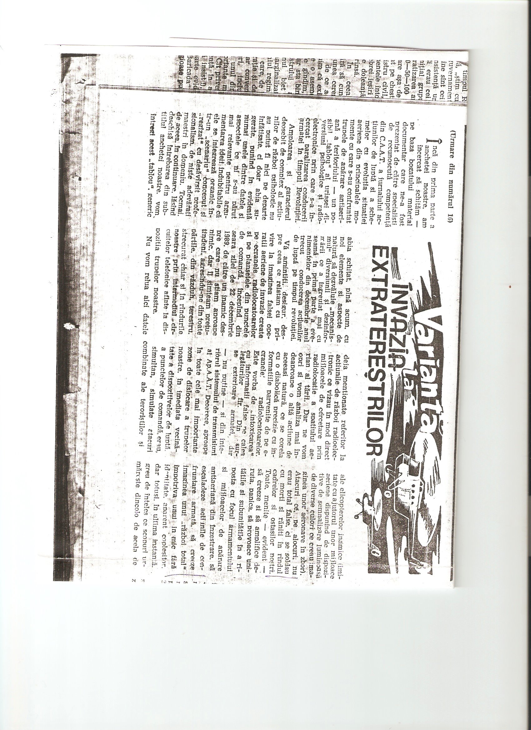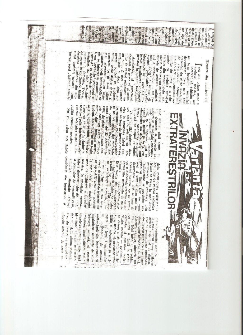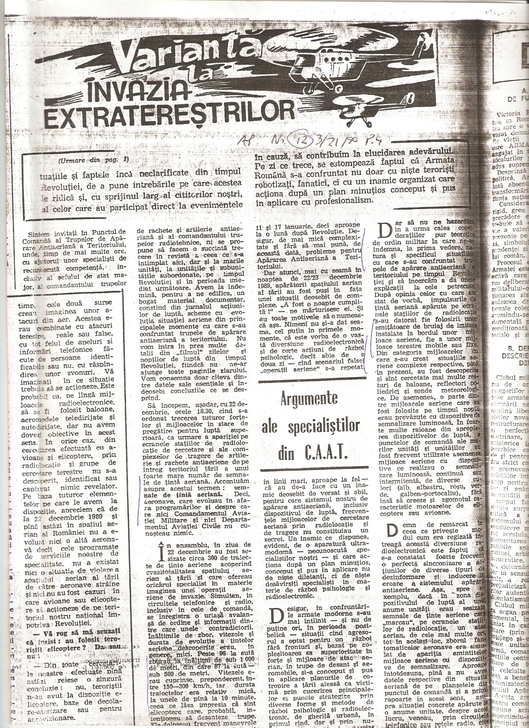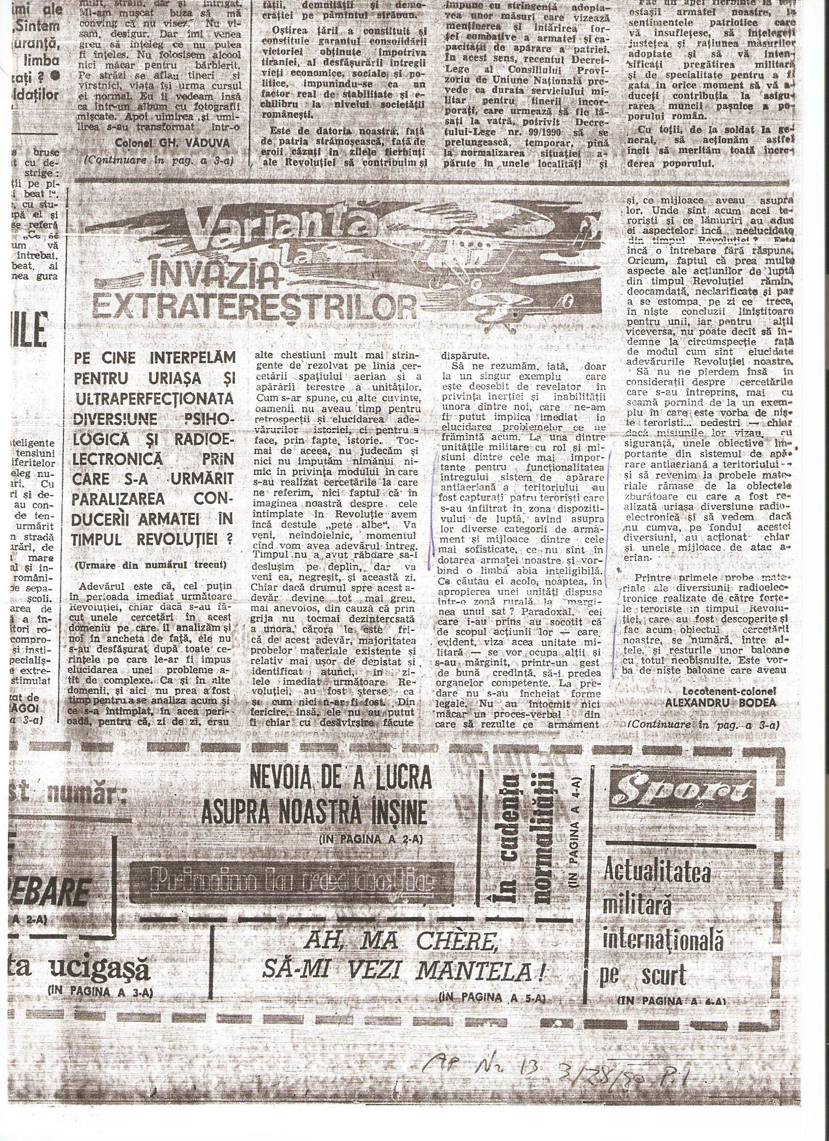 Locotenent-colonel Alexandru Bordea, “Varianta la Invazia Extraterestrilor,” Armata Poporului, nr. 19 (9 mai 1990), p.2.