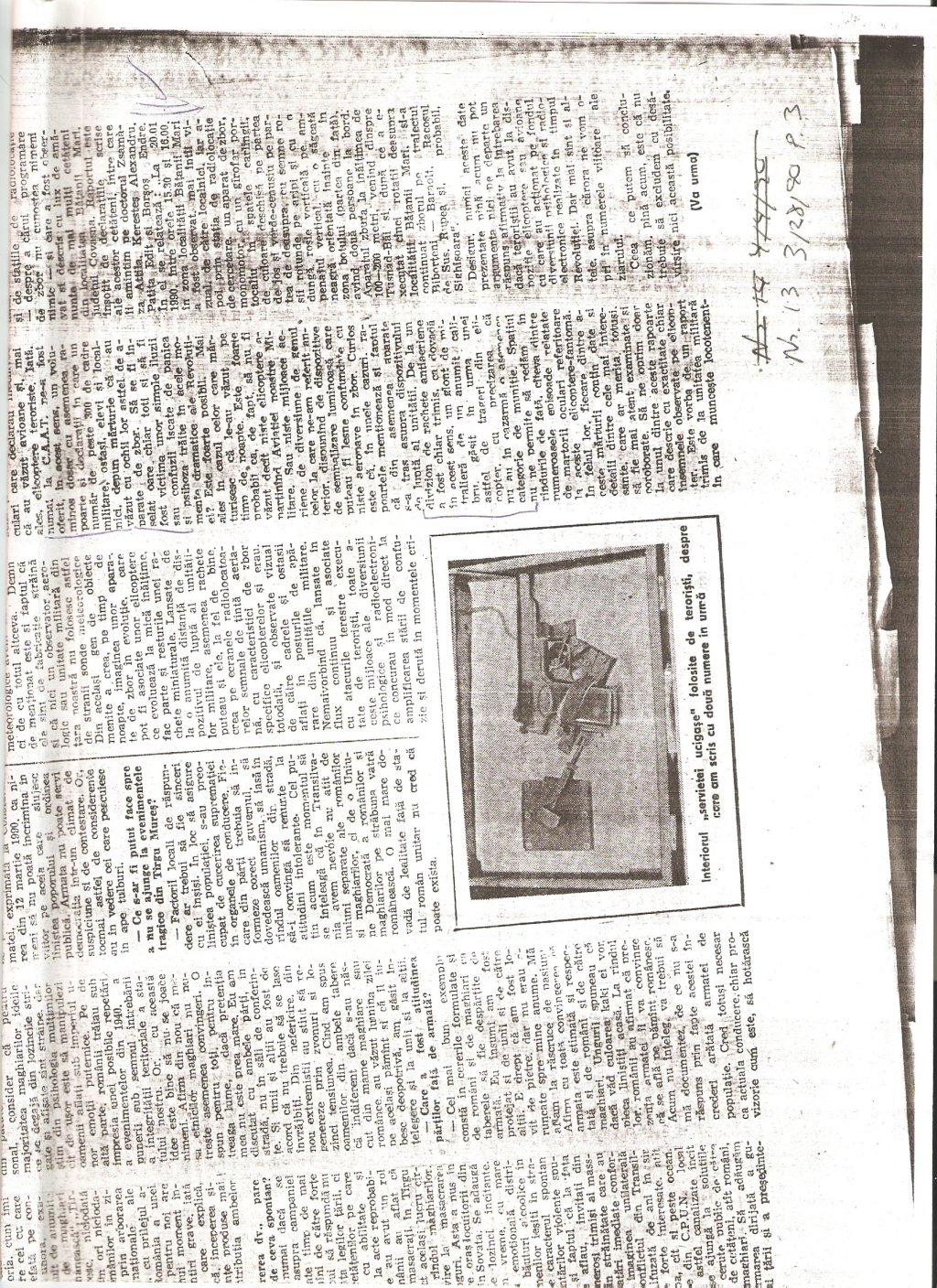 “…[T]he Military Prosecutor gave me two variants. In the first part of the inquest, they [the flight’s passengers] were from the Interior Ministry. Later, however, in the second half of the investigation, when the USLA and those from the Interior Ministry began, so-to-speak, to pass ‘into the shadows,’ — after which one no longer heard anything of them — they [the passengers] turned out to be simple citizens…” (interview with Nicu Ceausescu in “Zig-Zag,” no. 20, 21-27 August 1990).