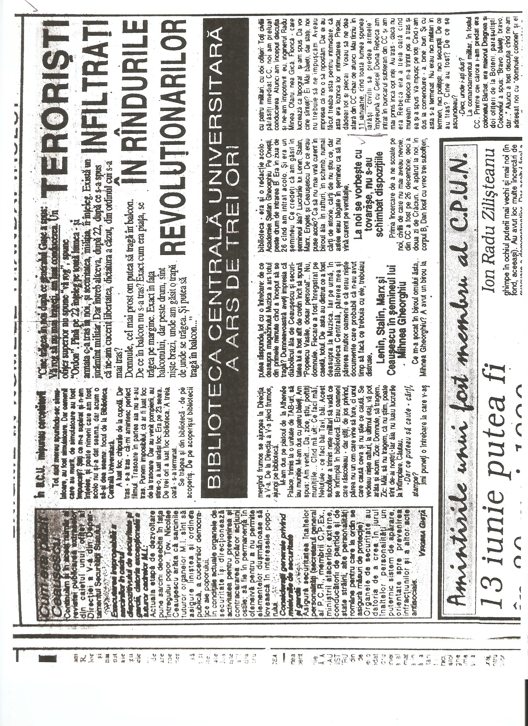 This was revealed by two associates of Cristian Popisteanu, editor in chief of Magazin Istoric, who witnessed the incidents. But so far, no word of what happened has appeared in the Bucharest press or on television.