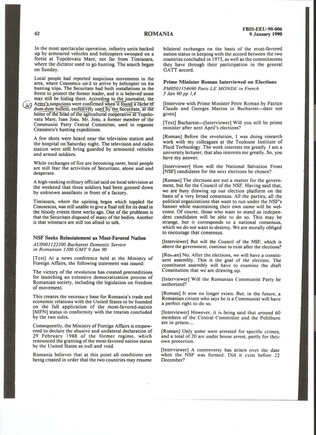 Katherine Verdery and Gail Kligman, two established Romanianists with extensive experience in the country, certainly made an understandable and judicious choice when writing the aforementioned chapter in November 1990. However, Linz and Stepan’s assumption/conclusion five years later that Verdery and Kligman had “sifted through the supposed facts and evidence” and “know all the literature” was way off. In retrospect, Verdery and Kligman, and, in fact, all of us who have researched this event, simply missed a lot of critical information—in part, because we did not know what to look for.