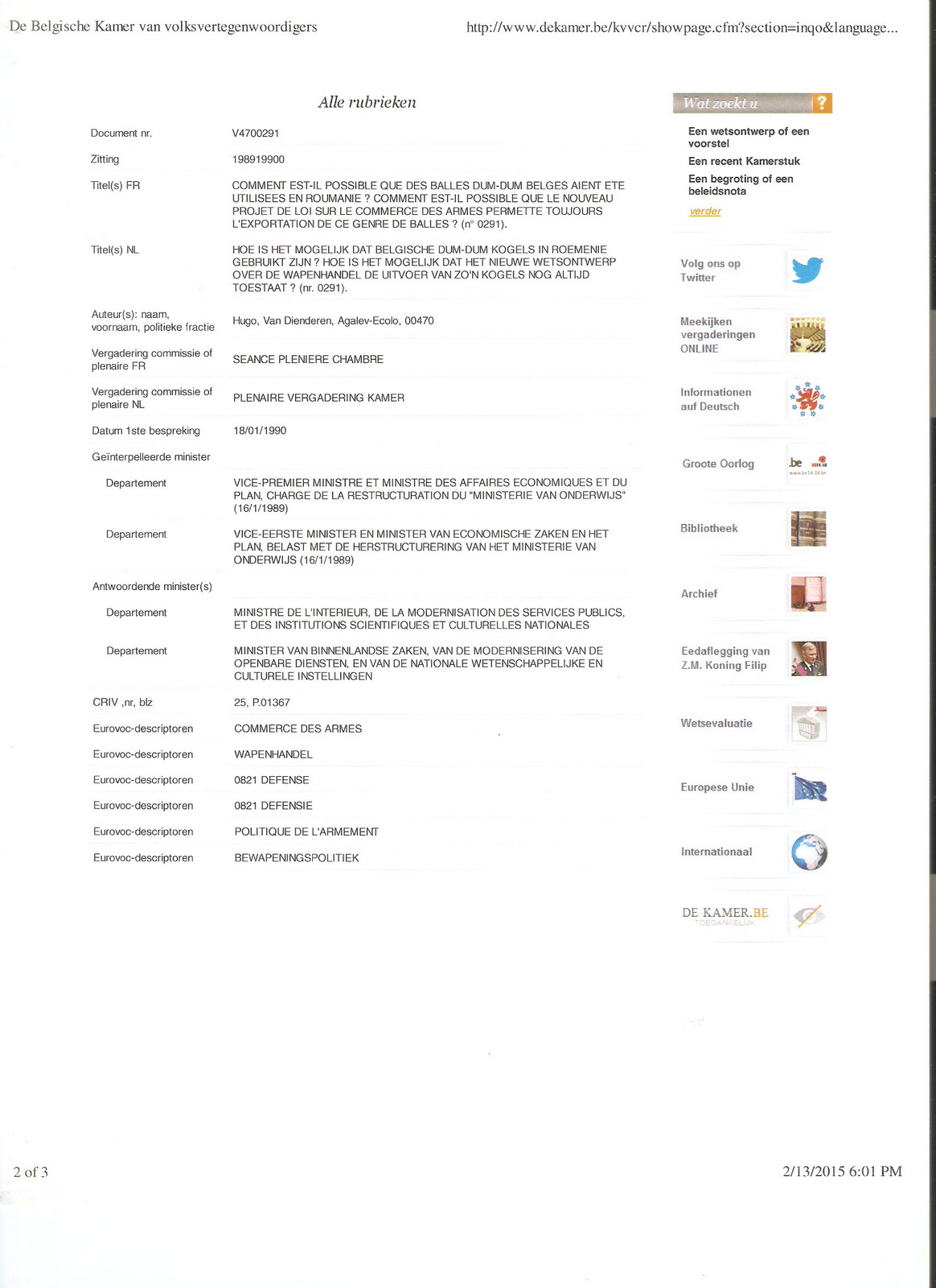 Indeed, a representative of the Belgian Parliament, Hugo Van Dienderen, spoke in the chamber on 18 January 1990, asking how it was that Belgian manufactured DUM-DUM bullets [they may have been hollow-point, or the 5.6 mm NATO munitions discussed above by Romanian military personnel in the article above] ended up being used in Romania?…further suggesting the absurdity of the idea that this was “only a rumor.”