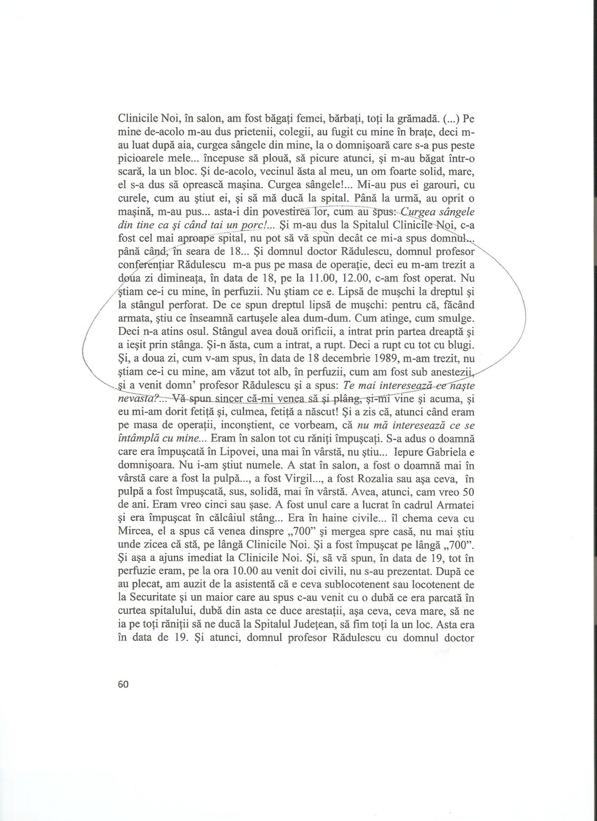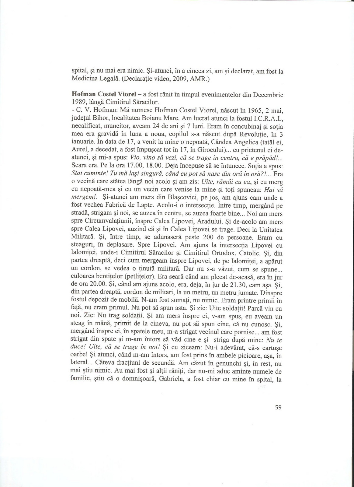“[pe 23 decembrie 1989] am fost impuscat…cu o arma de calibru mare si probabil cu gloante dum-dum”