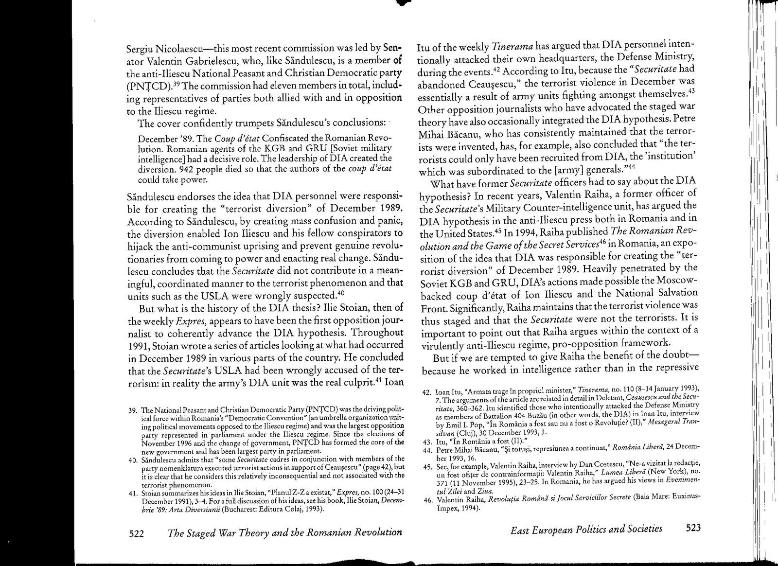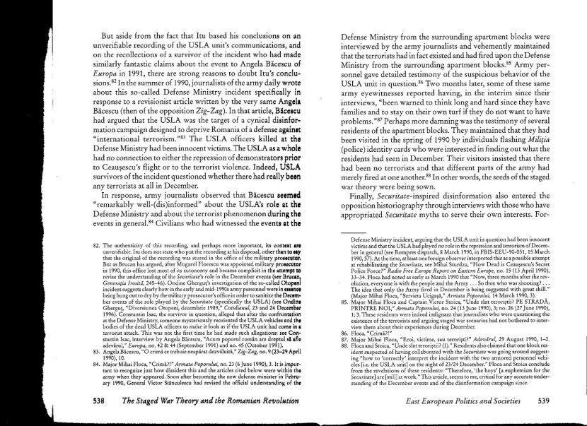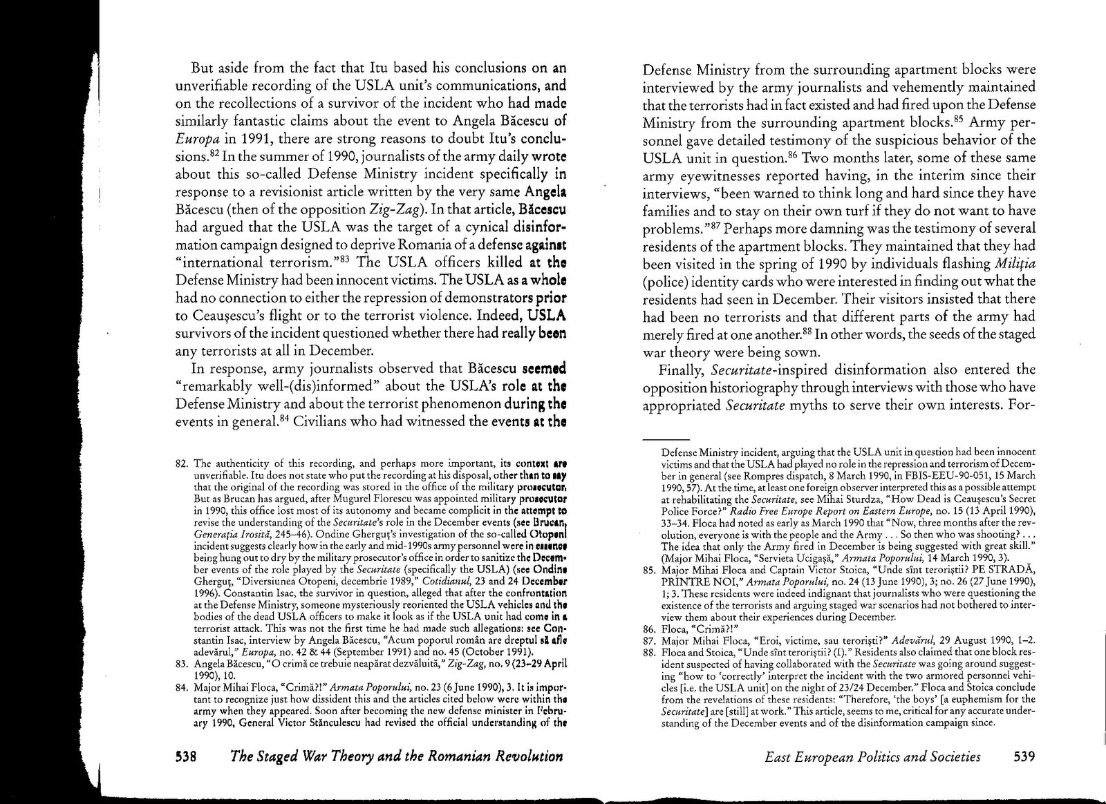 […] I have posted on this site) and my Fall 1999 article in East European Politics and Societies (EEPS) The Uses of Absurdity: The Staged War Theory and the Romanian Revolution of December 1989, with my publications–posted on this site–since joining the Agency, show clearly the […]