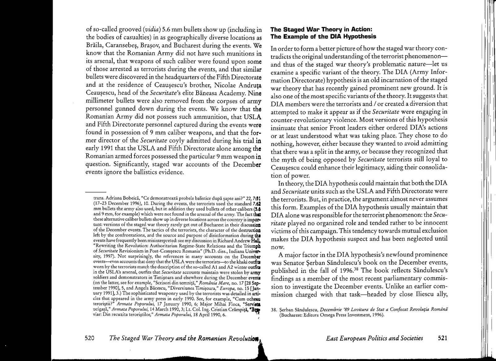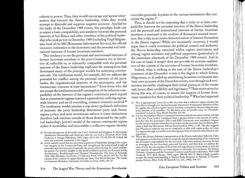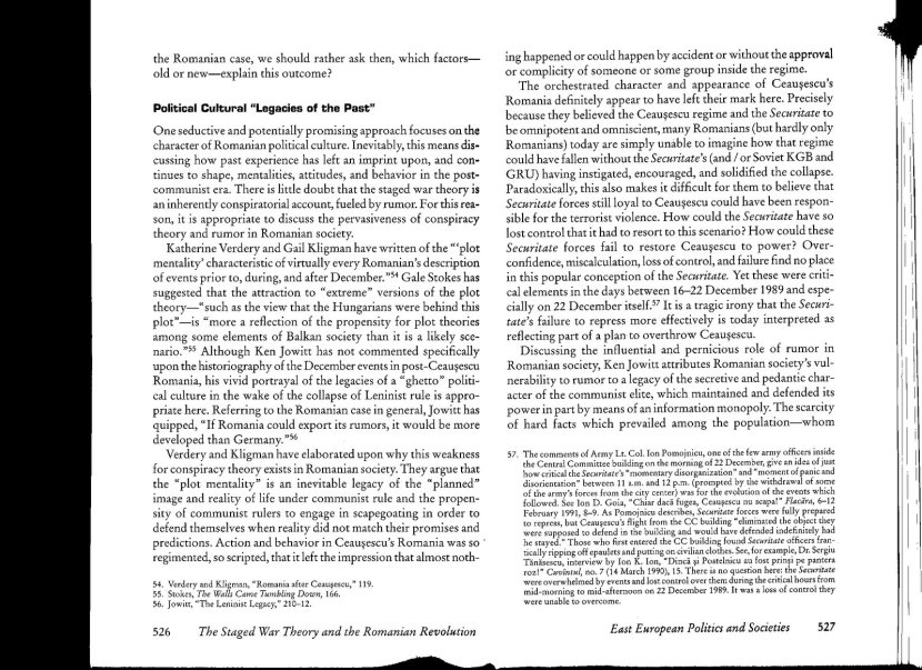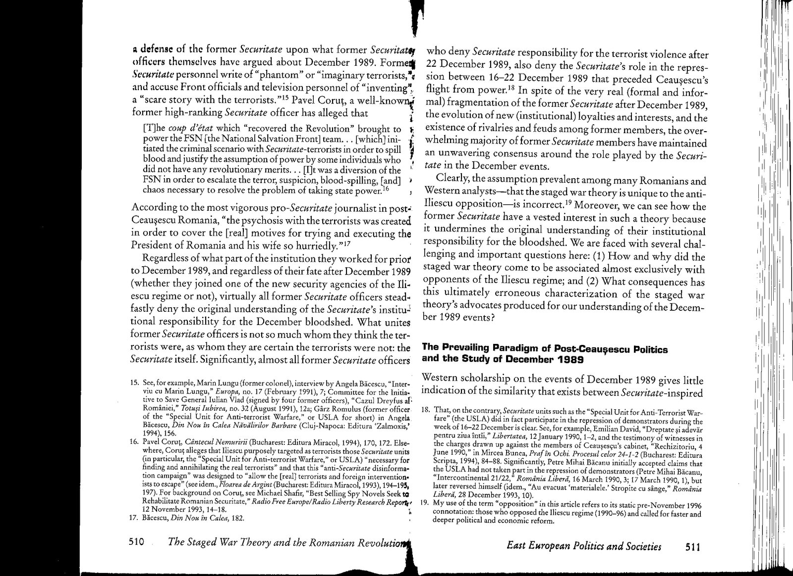 […] I have posted on this site) and my Fall 1999 article in East European Politics and Societies (EEPS) The Uses of Absurdity: The Staged War Theory and the Romanian Revolution of December 1989, with my publications–posted on this site–since joining the Agency, show clearly the […]