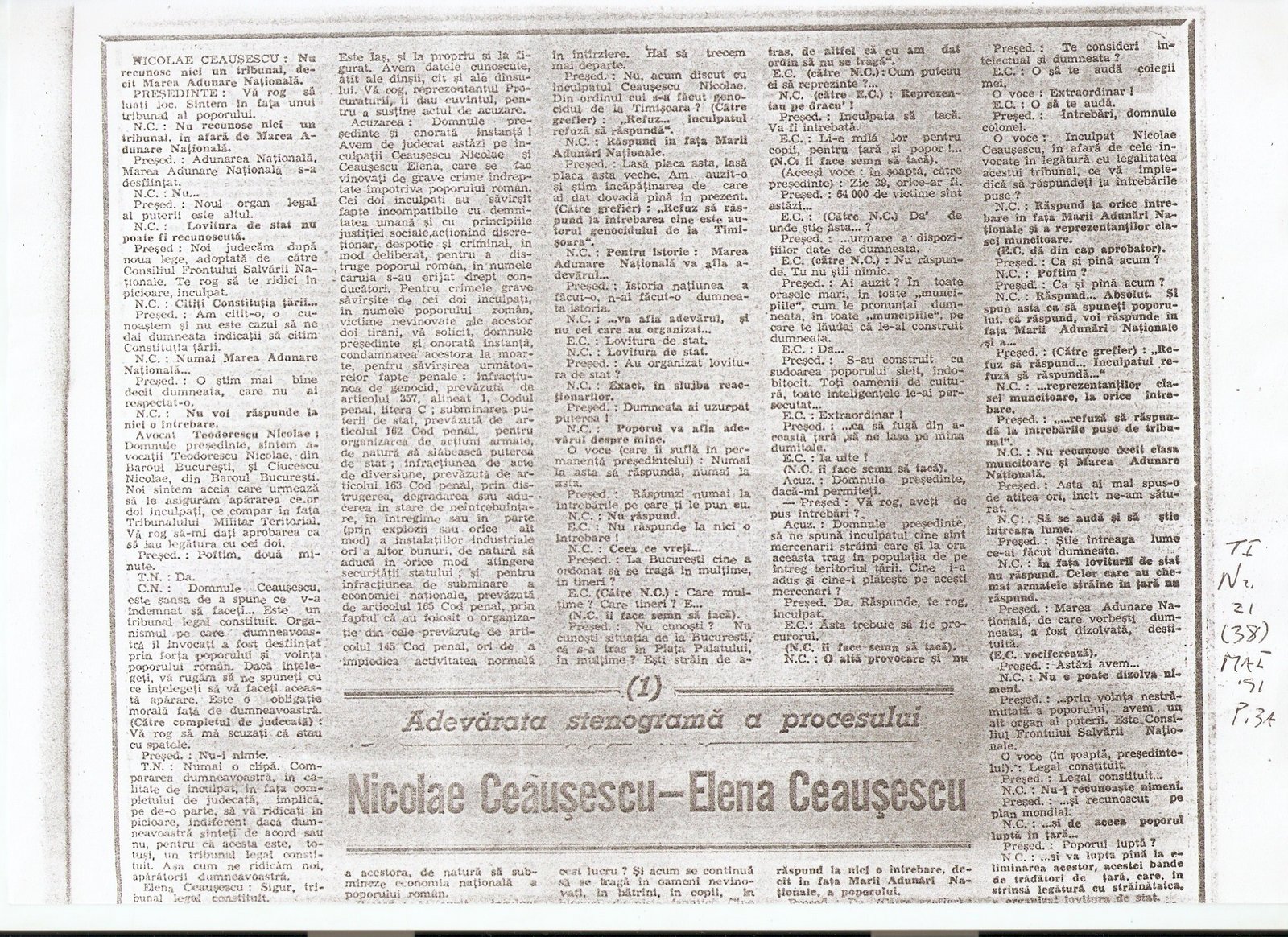 Transcripts/Stenograme of the Trial of Nicolae and Elena Ceausescu