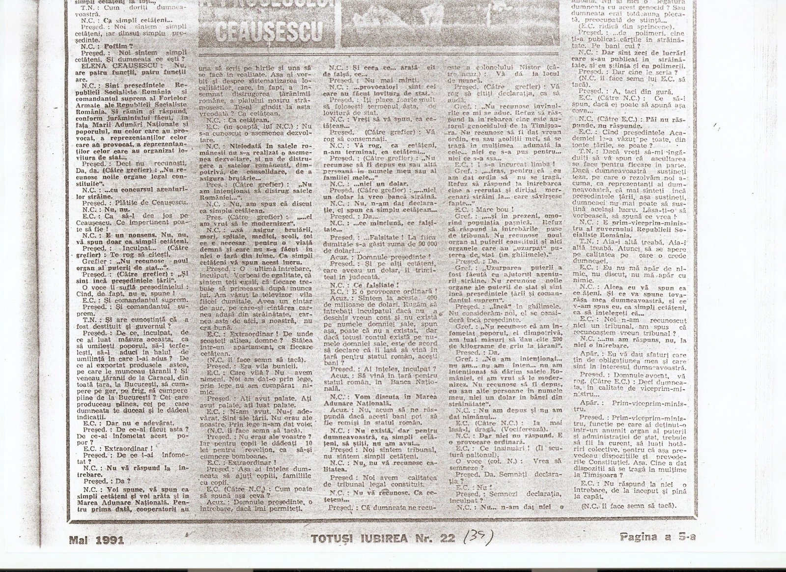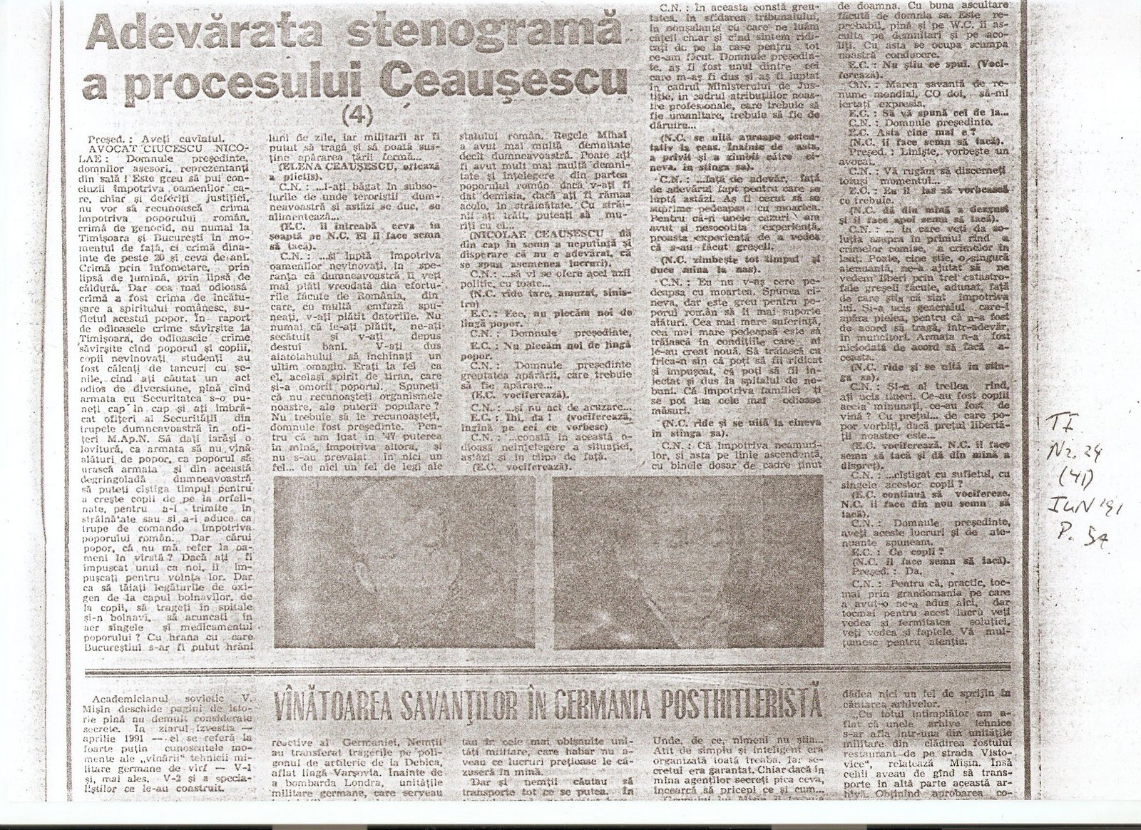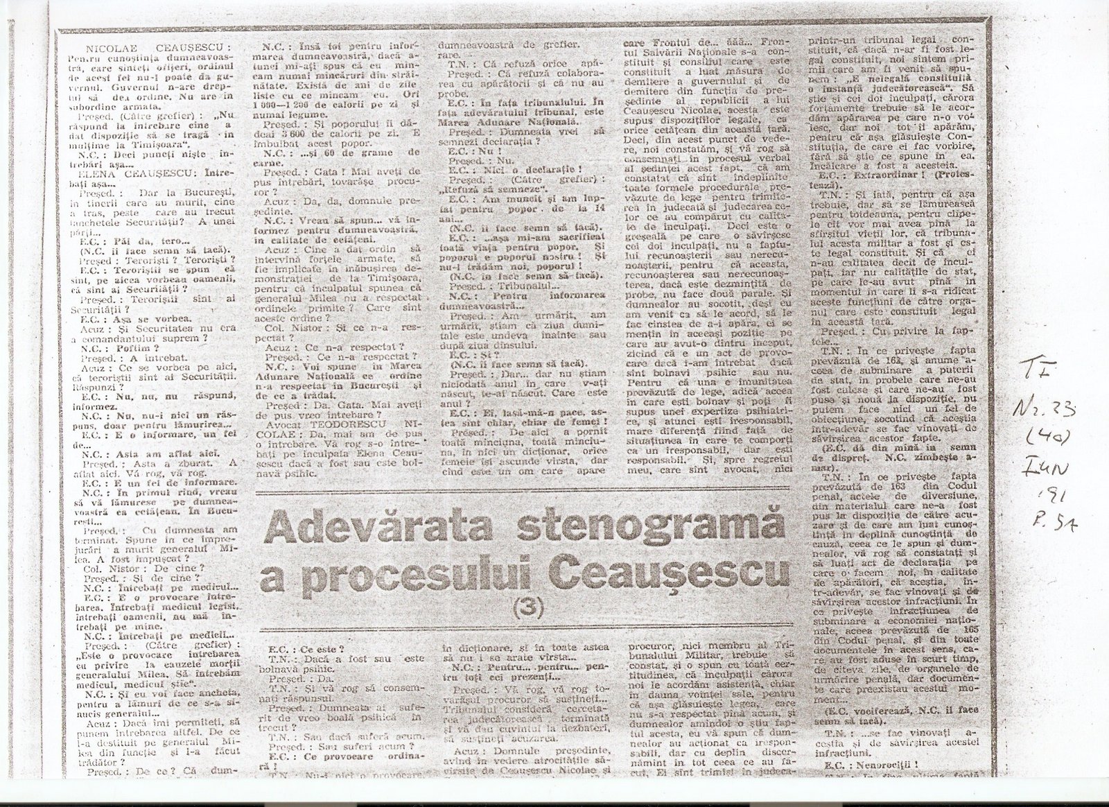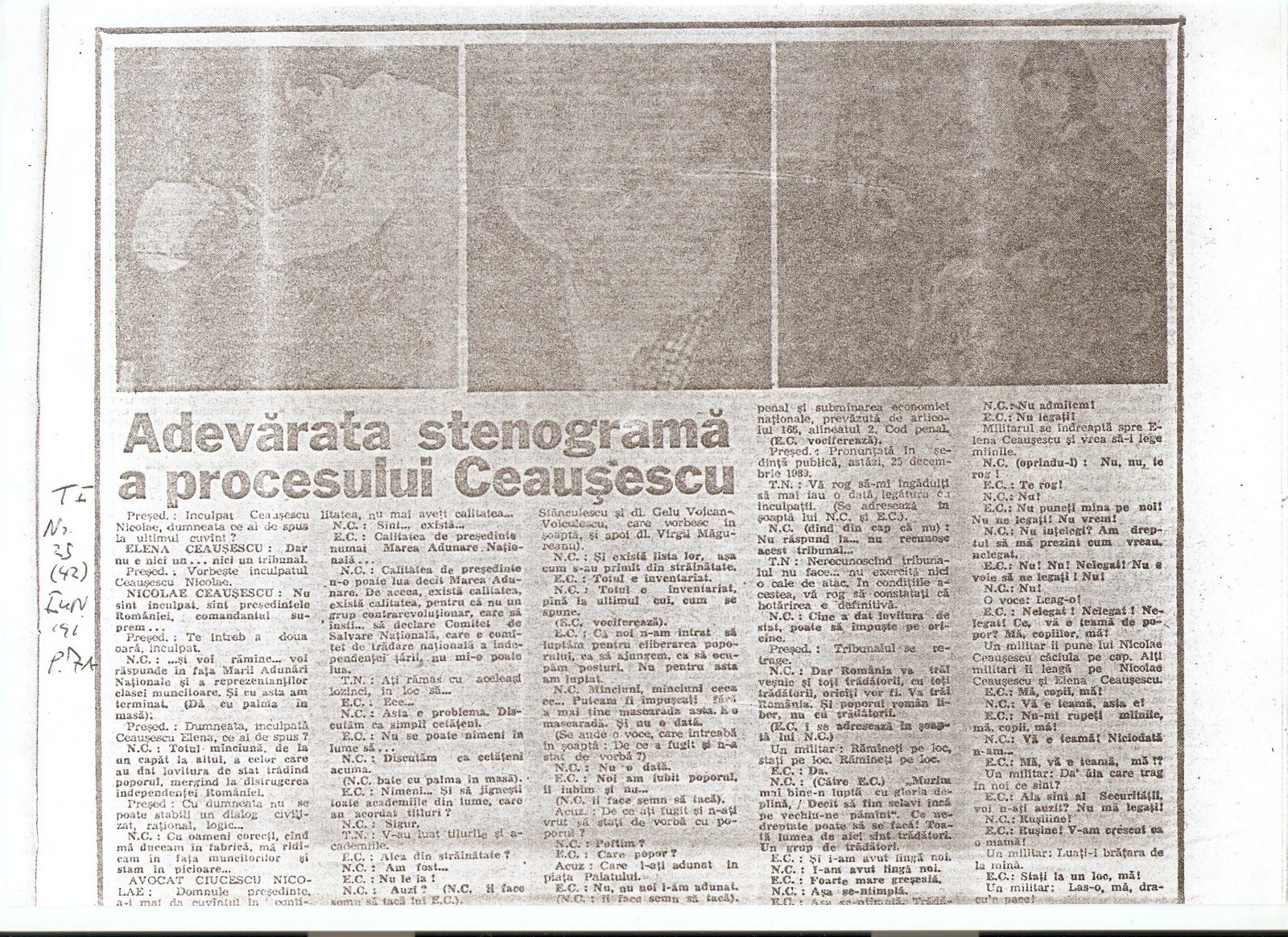 Adrian Paunescu’s Totusi Iubirea in May 1991- June 1992 under the title “Adevarata stenograma a procesului Nicolae Ceausescu – Elena Ceausescu.”